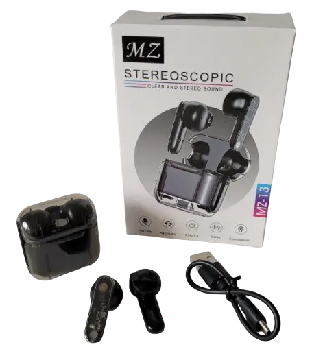 Incluye: Auriculares MZ13, estuche de carga, cable USB y manual de usuario