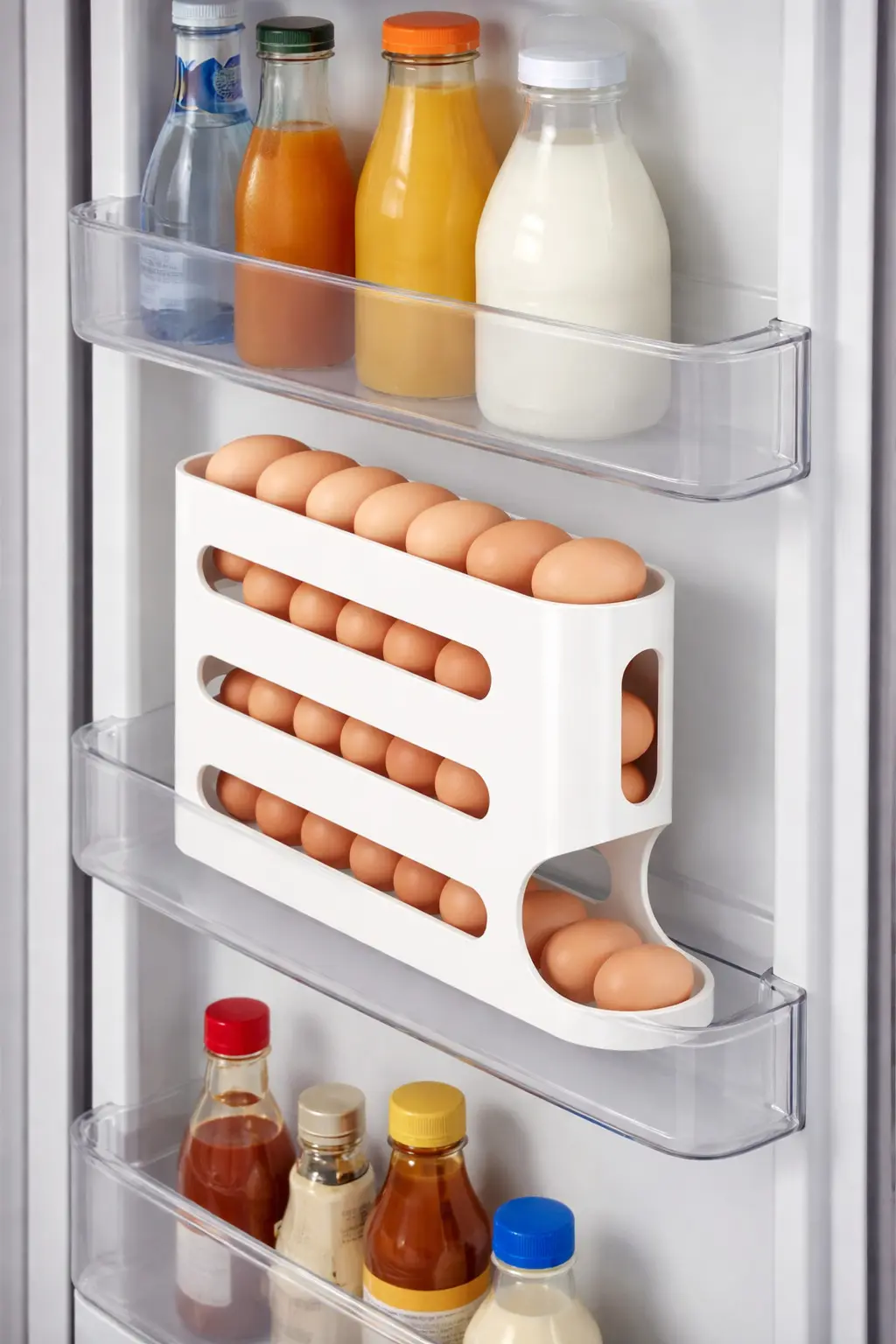 Beneficios: Dispensa un huevo a la vez, mantiene los huevos limpios y organizados