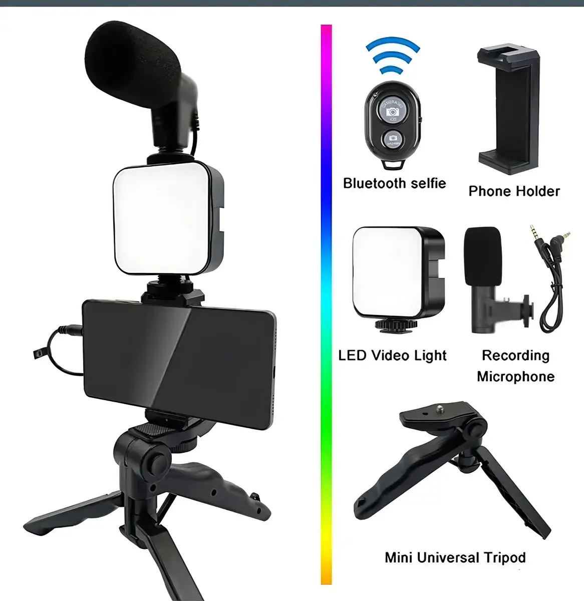 Trípode + Luz LED + Micrófono | Tu estudio portátil en minutos