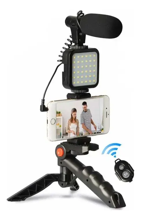 Componentes: Trípode + Luz LED + Micrófono