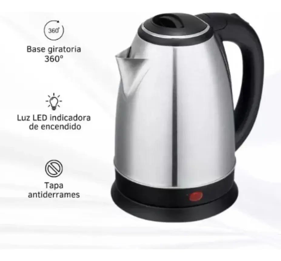 Cuenta con apagado automático por temperatura, brindando mayor seguridad y tranquilidad durante su uso. La base giratoria facilita el manejo desde cualquier ángulo, mientras que la luz LED indicadora permite saber en todo momento cuándo la pava está en funcionamiento.