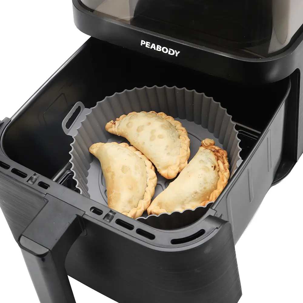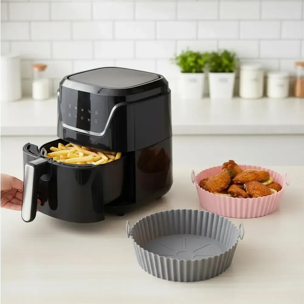 El recipiente reutilizable de silicona para Airfryer está diseñado para facilitar la cocción de alimentos sin generar residuos adicionales. Fabricado en silicona resistente al calor, soporta temperaturas de hasta 240 °C, lo que lo hace ideal para cocinar, hornear y recalentar de una forma más limpia y segura.