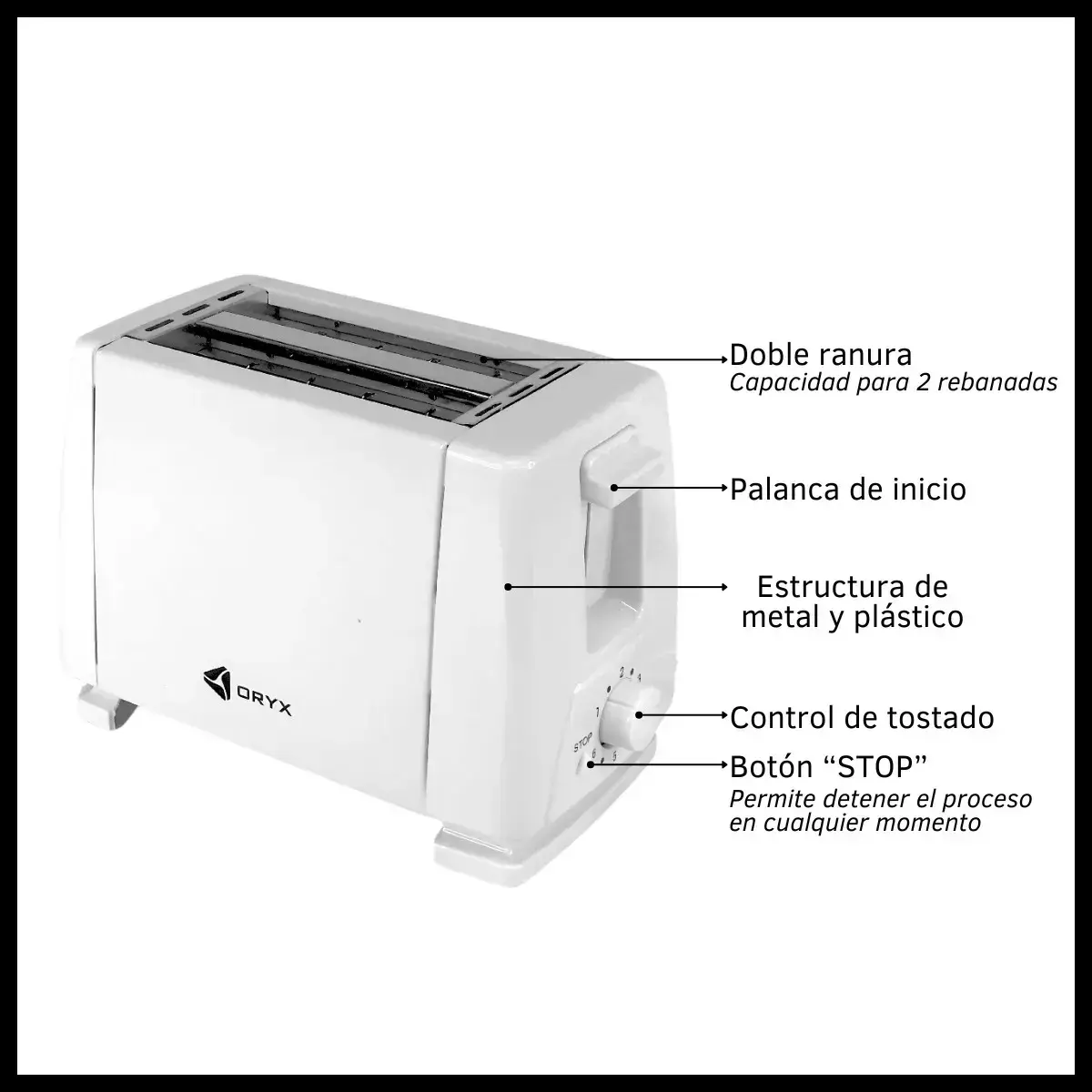 La tostadora eléctrica de 2 ranuras es ideal para quienes buscan practicidad y control al momento de preparar tostadas. Con 6 niveles de tostado, permite seleccionar el punto deseado para diferentes tipos de pan. Además, incorpora botón de detener para interrumpir el ciclo en cualquier momento y eyección automática para mayor comodidad y seguridad.